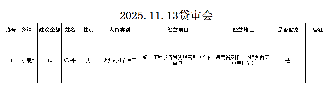 以上1人申请创业担保贷款2025年11月13日经贷审会审核通过,审核程序透明、结果公示,请广大群众予以监督。