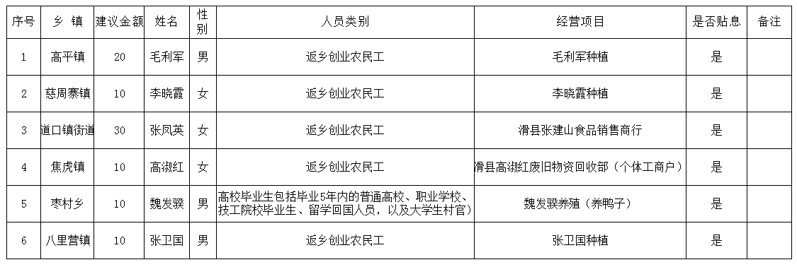 以上6人申请创业担保贷款2025年12月11日经贷审会审核通过,审核程序透明、结果公示,请广大群众予以监督。监督电话:0372-8169591