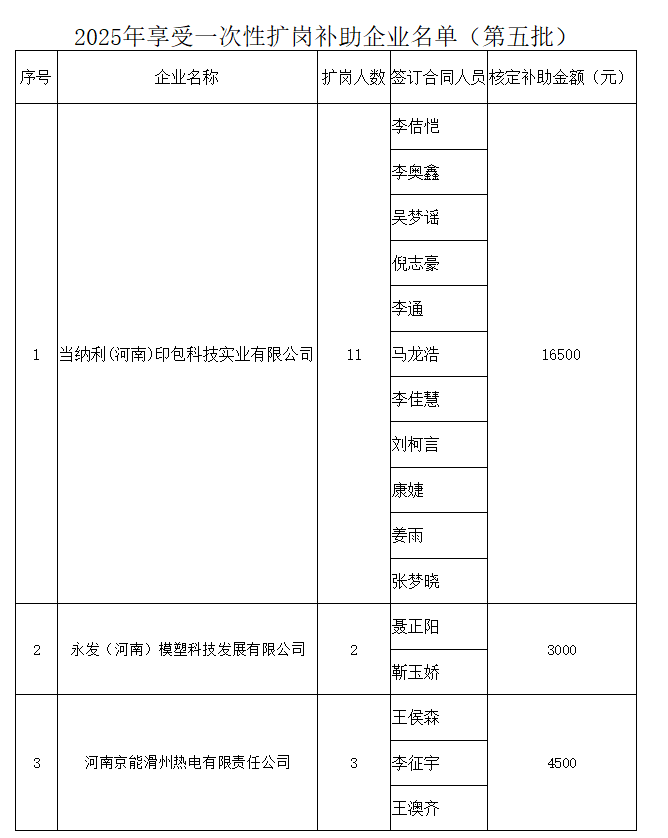 滑县社会保障中心关于一次性扩岗补助情况的公示 (2025年第五批)