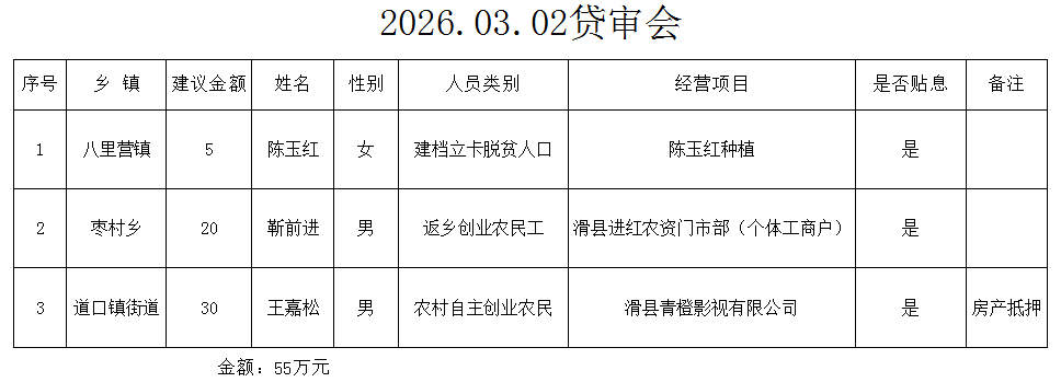 以上3人申请创业担保贷款2026年03月02日经贷审会审核通过,审核程序透明、结果公示,请广大群众予以监督。监督电话:0372-8169591