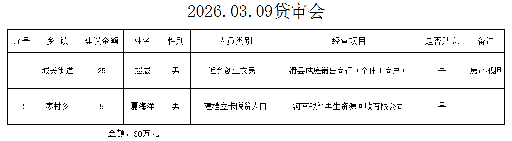 以上2人申请创业担保贷款2026年03月09日经贷审会审核通过,审核程序透明、结果公示,请广大群众予以监督。监督电话:0372-8169591