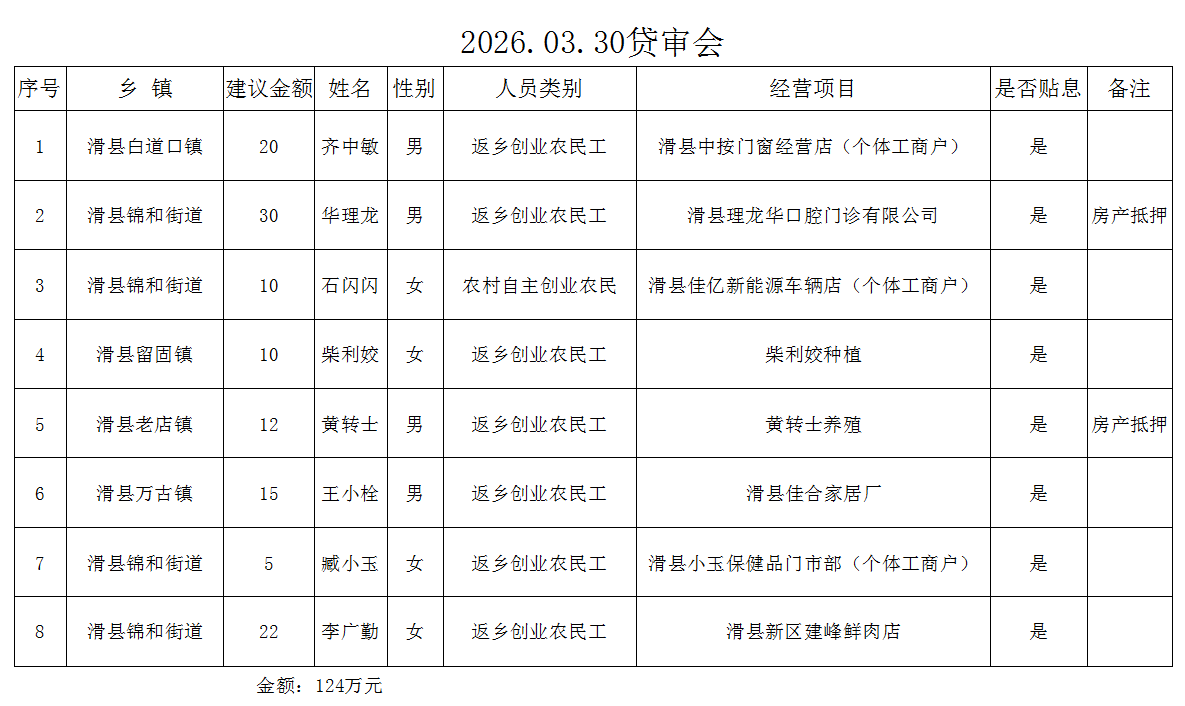 以上8人申请创业担保贷款2026年03月30日经贷审会审核通过,审核程序透明、结果公示,请广大群众予以监督。监督电话:0372-8169591
