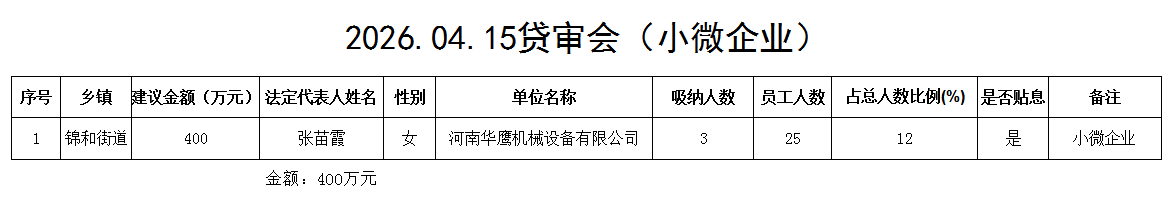 以上1家企业申请创业担保贷款4月15日经贷审会审核通过,审核程序透明、结果公示,请广大群众予以监督。监督电话:0372-8169591