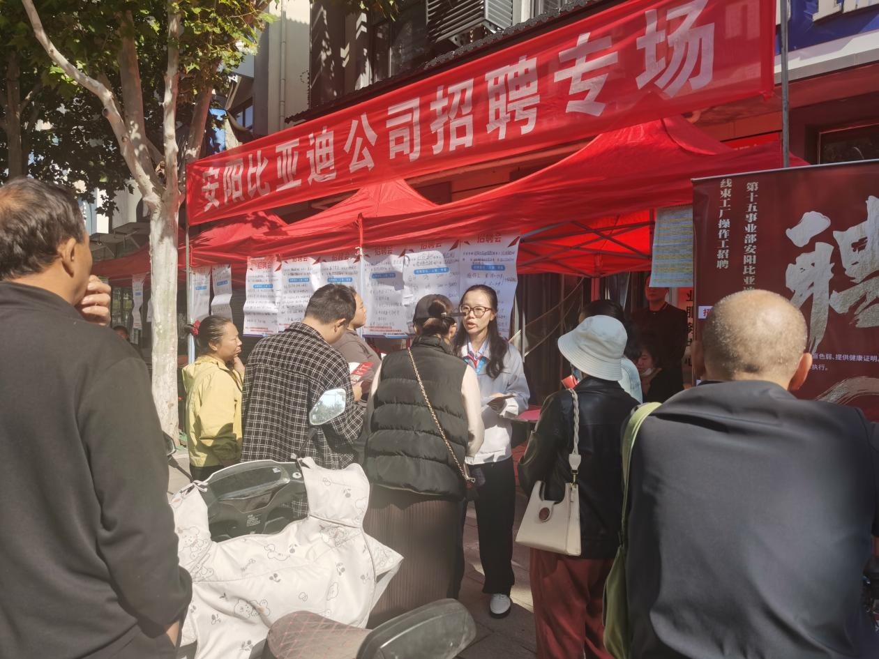 为深入贯彻落实县委、县政府关于稳就业、保就业的决策部署,进一步拓宽我县劳动者就业渠道,搭建精准高效的人力资源对接平台,促进本地人才就近就业,滑县人才就业服务中心于2025年9月25日在人力资源市场门前成功举办了“安阳比亚迪公司招聘专场”活动。
