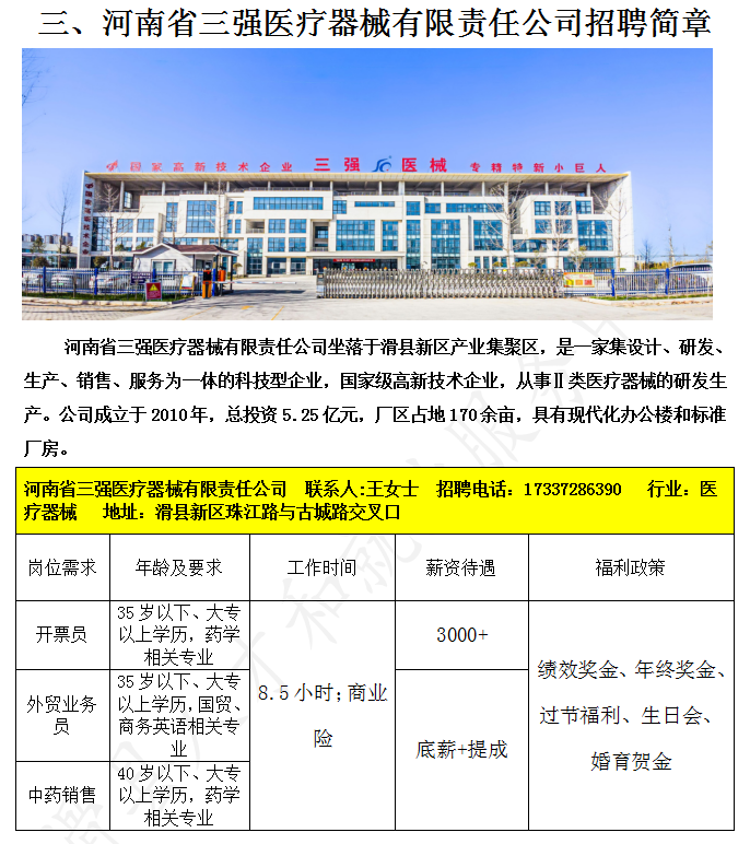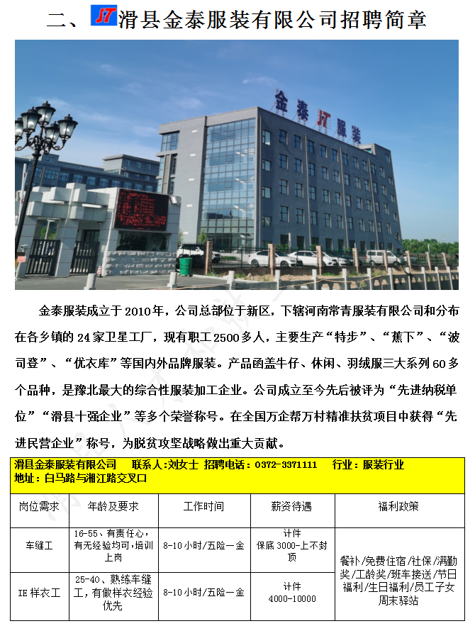 2025年11月份滑县企业招聘信息一览表(四十二)