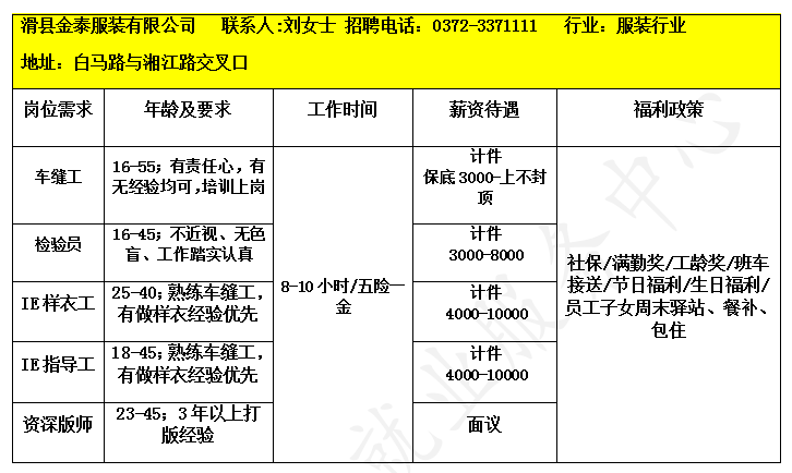 2025年12月份滑县企业招聘信息一览表(四十八)