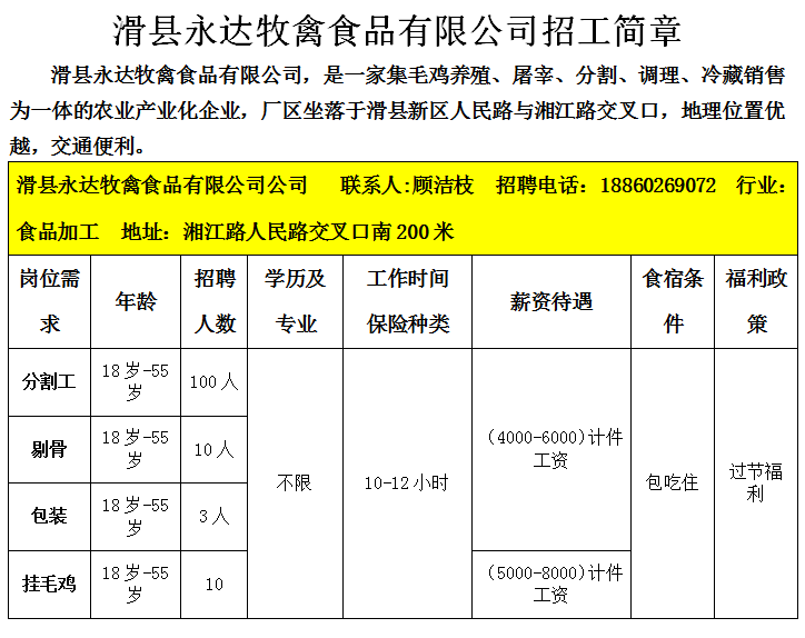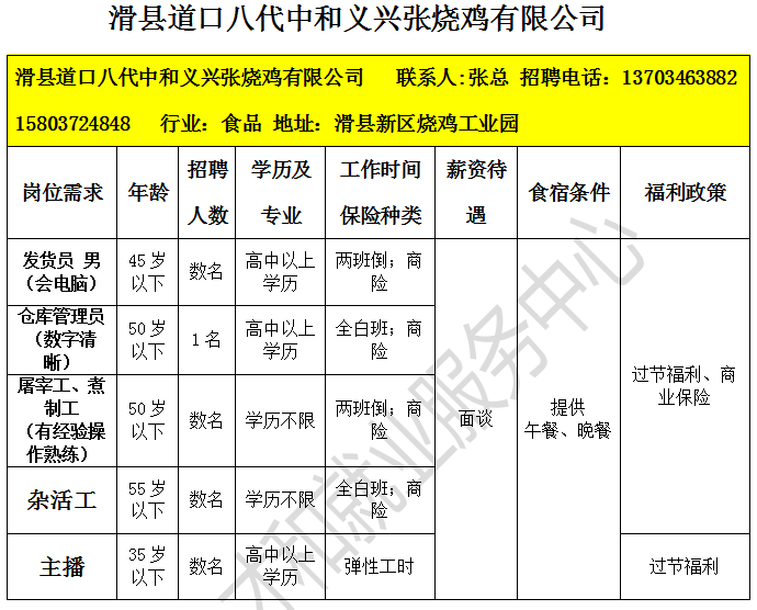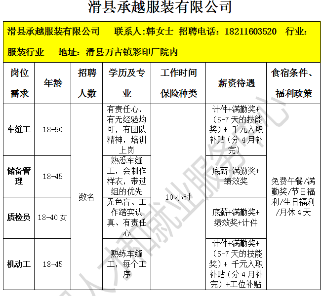 2026年04月份滑县企业招聘信息一览表(十二)